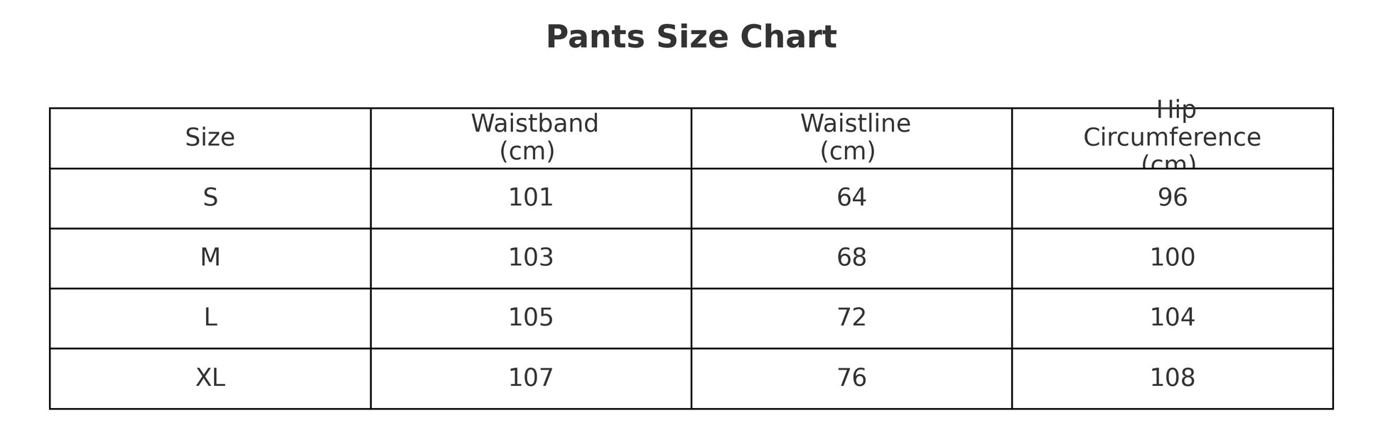 Size chart on last slide